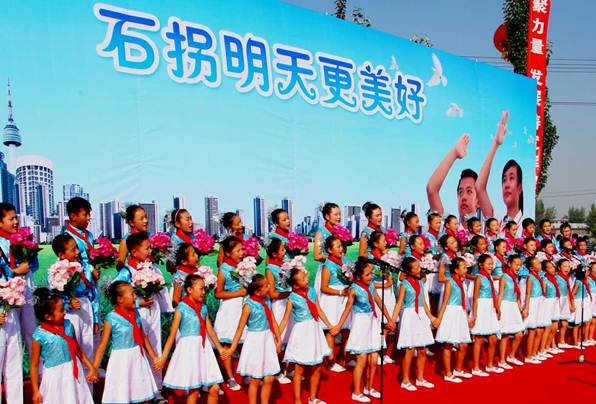 (充分展示未成年人思想道德建设:孩子们用经典诵读的形式朗诵原创诗歌《石拐赋》)