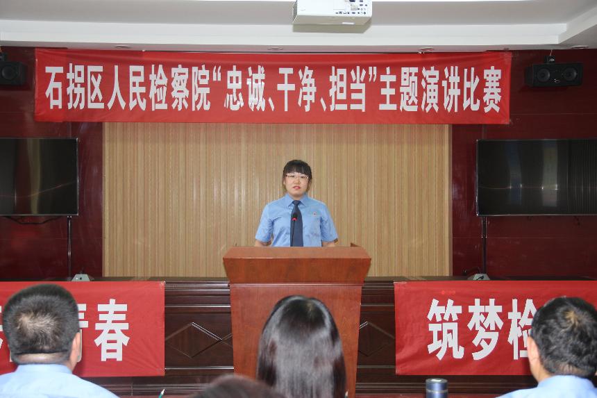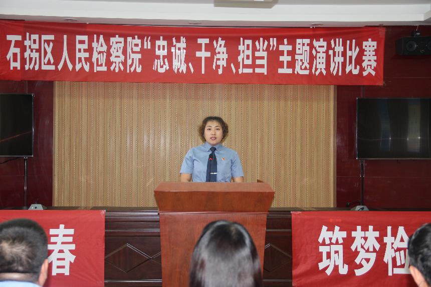“我离开了校园,可以说是经过披荆斩棘、千军万马,终于有幸通过了公考这条独木桥,成为石拐检察院的一名新兵,走向人生的另一个阶段。” 6月2日,石拐区人民检察院举行“ 忠诚、干净、担当”主题演讲比赛。